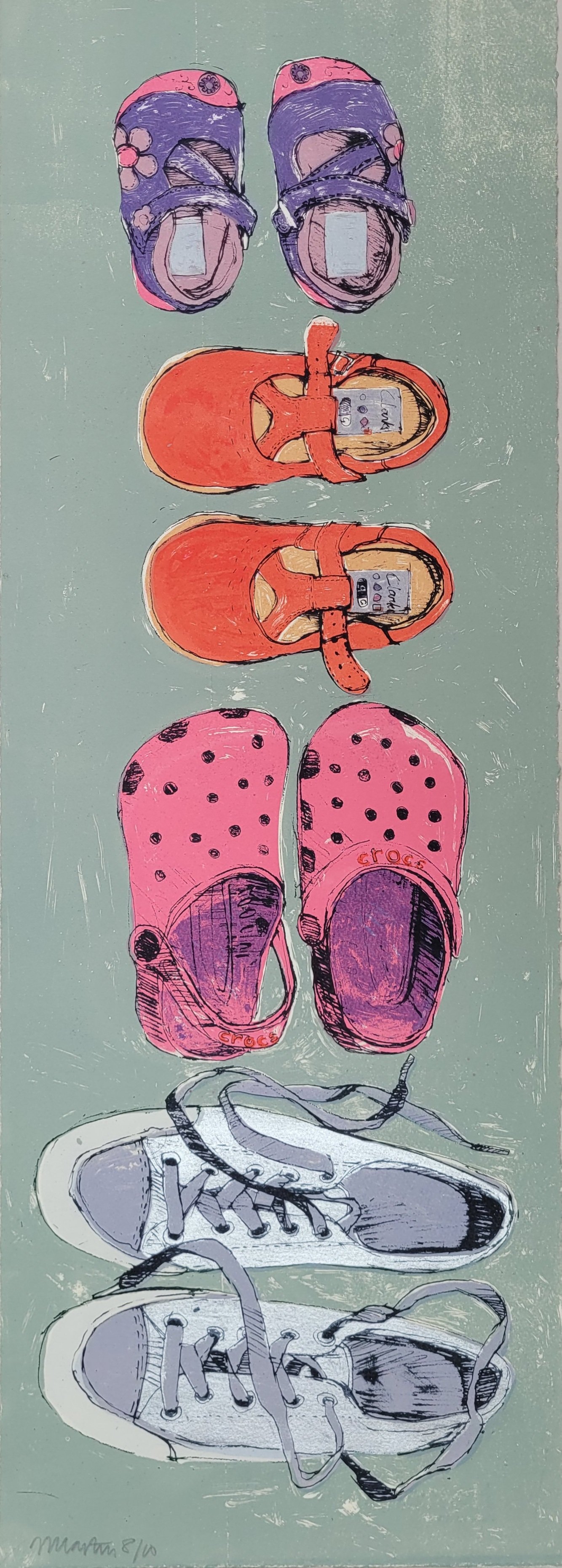 Part of my Family Heirloom series where I took collections of objects that symbolised my family and family relationships in general. This is a collection of my daughter's shoes, kept over the years and show a kind of timeline of things change. It is both personal and universal.
