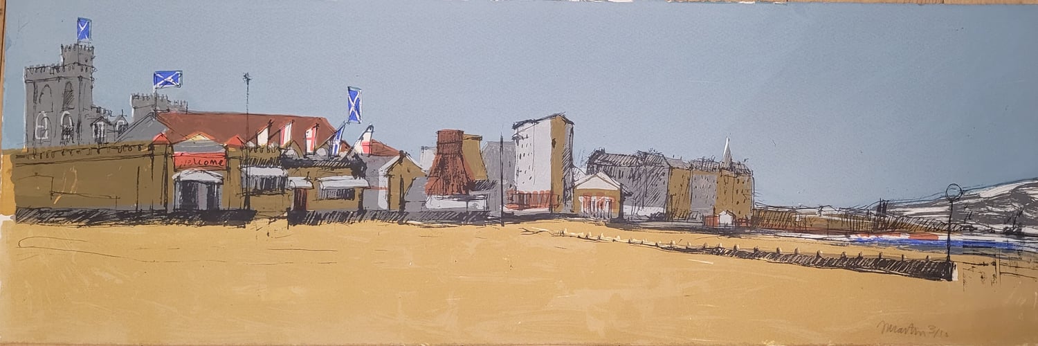 This a view from the beach in Portobello, looking towards the historic bottle kilns and the amusement arcade that is just in front of them. There used to be lots of arcades and funfairs along this stretch of the promenade, and this is the only one that remains.